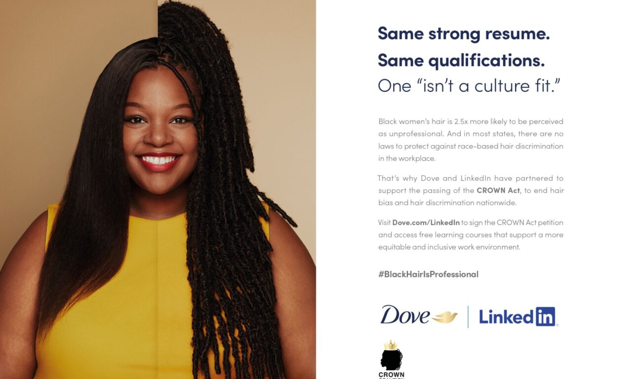 «El objetivo de la alianza entre Dove y LinkedIn es ayudar a poner fin a la discriminación por el cabello asociada a la raza en el lugar de trabajo. Pretendemos sacar a relucir este tema e instamos a los empleadores, gerentes de contratación y profesionales a adoptar prácticas equitativas e inclusivas que creen un mundo respetuoso y abierto para el cabello natural». Agregó.